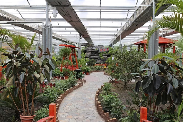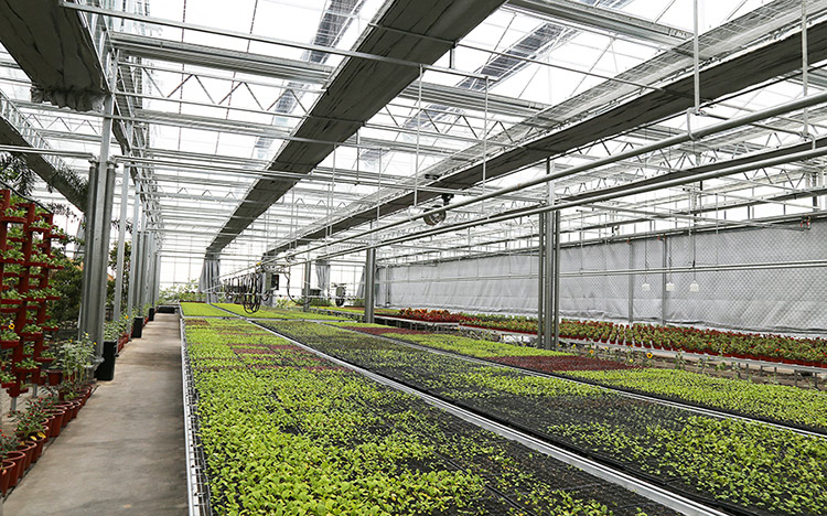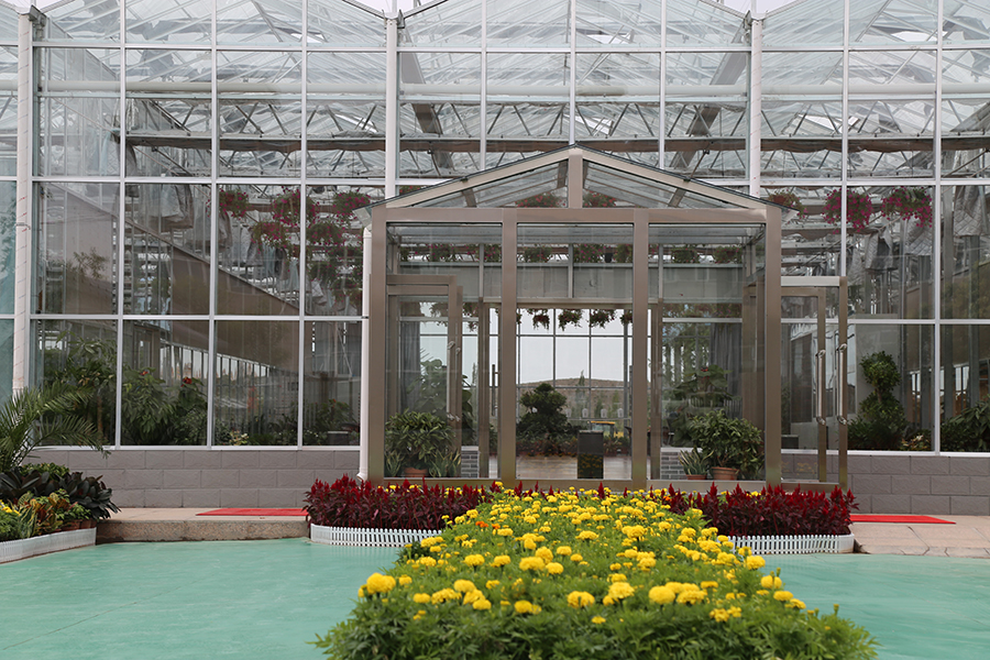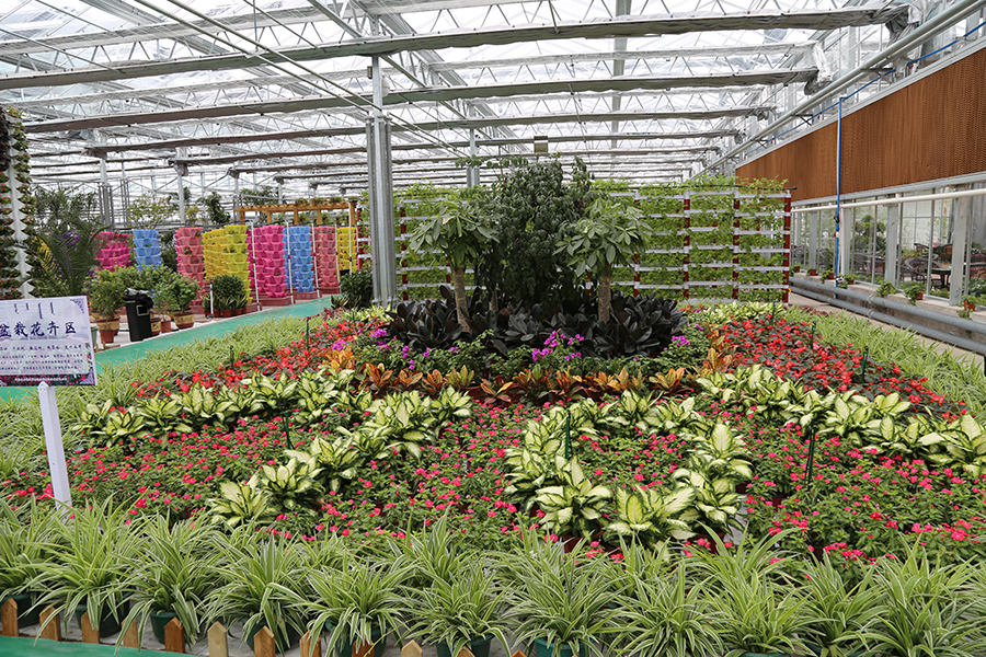 智能溫室大棚占地約6000平方米,分為一號廳和二號廳。其中一號廳是新建的有錯(cuò)層的玻璃溫室,分為盆栽花卉、盆栽果樹區(qū)、沙生植物區(qū)、熱帶風(fēng)情區(qū)、家庭園藝區(qū)等功能區(qū)。二號廳由舊溫室改造而成,頂部為陽光板,四周立面為玻璃,配置了智能控制系統(tǒng),有無土栽培區(qū)、育苗區(qū)、采栽體驗(yàn)區(qū)等功能區(qū)。智能溫室全部配備了內(nèi)、外保溫系統(tǒng),冬季保溫,比普通溫室更節(jié)能。溫棚內(nèi)移動苗床一次育苗30萬株,可供給巴彥霍德406座溫棚,一定程度上帶動了農(nóng)民增收。不論是熱帶植物、水果還是沙漠植物,在這里你可以一覽無余,一年四季感受綠色勃勃生機(jī)。