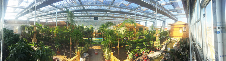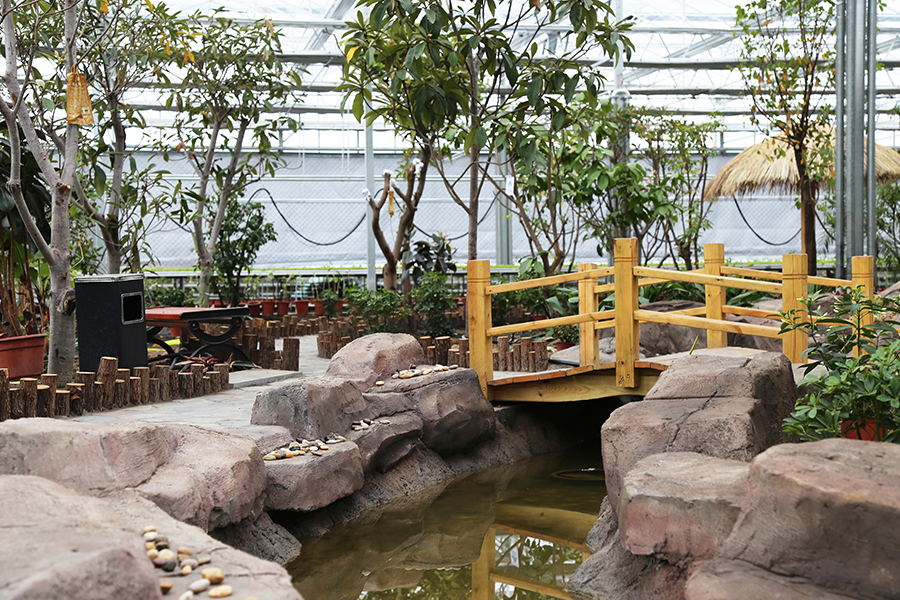 綜合型溫室是在溫室中人為制造大自然環(huán)境,山水、瀑布、花草、果木等映入眼簾,是以上幾種溫室開發(fā)模式的綜合。包括以旅游接待服務(wù)為主要功能的各種溫室,由于溫室內(nèi)環(huán)境的可控制性,可種植不同氣候地區(qū)的以及反季節(jié)植物,提供田園農(nóng)業(yè)游、園林觀光游、水果蔬菜的采摘等務(wù)農(nóng)體驗游活動,以及以現(xiàn)代高科技農(nóng)業(yè)展示、科普教育等主題的農(nóng)業(yè)科技游。綜合型溫室通常以鄉(xiāng)村環(huán)境、田園風(fēng)光為大背景,內(nèi)部空間的功能設(shè)置可以由農(nóng)業(yè)向復(fù)合型休閑、會議度假、康療體檢等延伸,形成一站式溫室休閑綜合體的概念。如內(nèi)蒙古阿拉善大漠綠苑智能溫室。