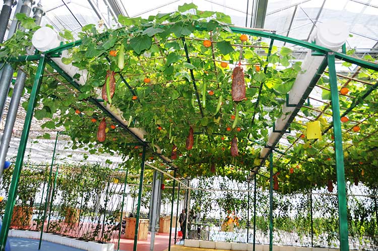 依托農(nóng)業(yè)科技園、特種植物培養(yǎng)基地等研究機(jī)構(gòu)形成的觀光溫室。這一類型的內(nèi)保溫日光溫室主要用于新奇特品種動植物培育、科技研發(fā)等用途,與生產(chǎn)依托型觀光溫室一樣,觀光旅游只是輔助產(chǎn)業(yè)。主要利用試驗基地中的新奇特產(chǎn)品以及無土栽培、營養(yǎng)液滴灌、生產(chǎn)要素全自動調(diào)配等大眾游客難以接觸到的前沿現(xiàn)代農(nóng)業(yè)技術(shù)作為核心吸引物,配套提供旅游服務(wù)設(shè)施與活動項目,將科普教育與高科技農(nóng)業(yè)觀光緊密結(jié)合,如內(nèi)蒙古農(nóng)科院智能溫室。