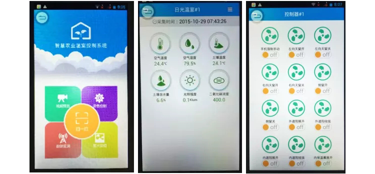設(shè)施農(nóng)業(yè)智能控制系統(tǒng):通過(guò)物聯(lián)網(wǎng)系統(tǒng),可以設(shè)定溫室內(nèi)各種設(shè)備運(yùn)行環(huán)境條件,當(dāng)環(huán)境信息未達(dá)到預(yù)先制定的條件時(shí),自動(dòng)啟動(dòng)溫室內(nèi)的相關(guān)設(shè)備,比如:風(fēng)機(jī)自動(dòng)調(diào)節(jié)通風(fēng)降溫、內(nèi)外遮陽(yáng)自動(dòng)調(diào)節(jié)光照強(qiáng)度、自動(dòng)噴滴灌、自動(dòng)加濕除濕、自動(dòng)施肥,實(shí)現(xiàn)智能化管理,節(jié)水,省電,省人工,更省心。
